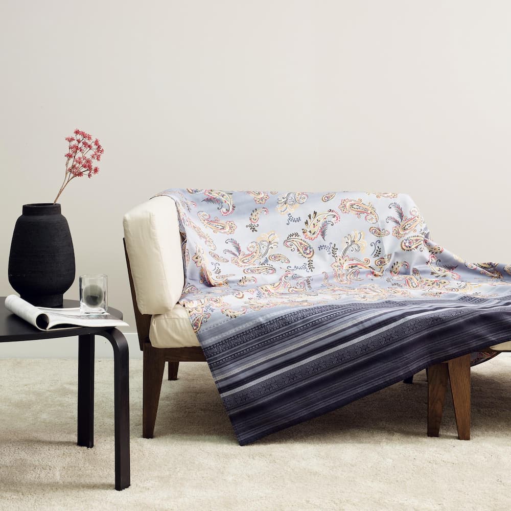 Telo d'arredo multiuso in puro cotone con stampa indanthrene per mantenere i colori inalterati nel tempo.