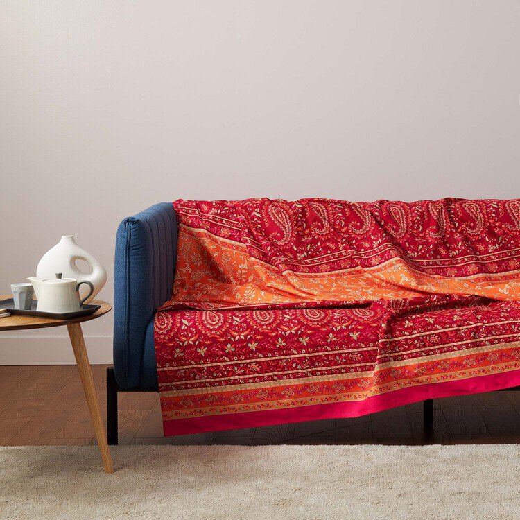 Telo d'arredo multiuso in puro cotone con stampa indanthrene per mantenere i colori inalterati nel tempo.
