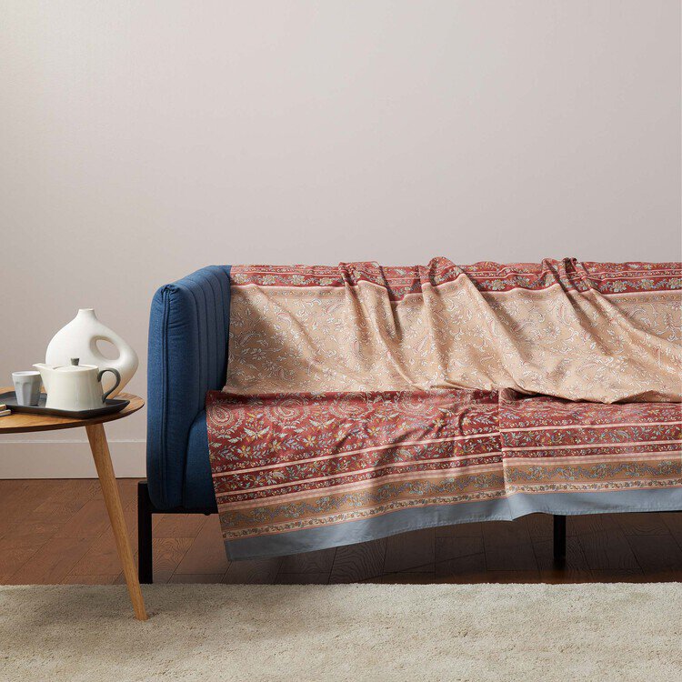 Telo d'arredo multiuso in puro cotone con stampa indanthrene per mantenere i colori inalterati nel tempo.