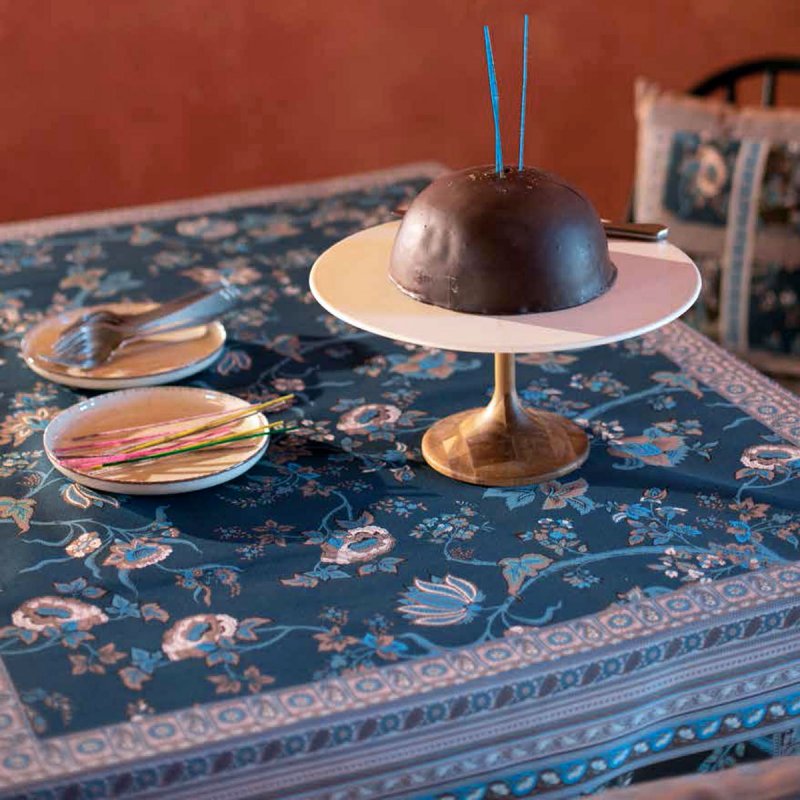 Tutta la qualità di Granfoulard Bassetti a tavola. La tovaglia GENOVA in fantasia orientale sui toni del blu, è disponibile in diverse misure, in panama di puro cotone, con trattamento esclusivo per una piacevole mano.