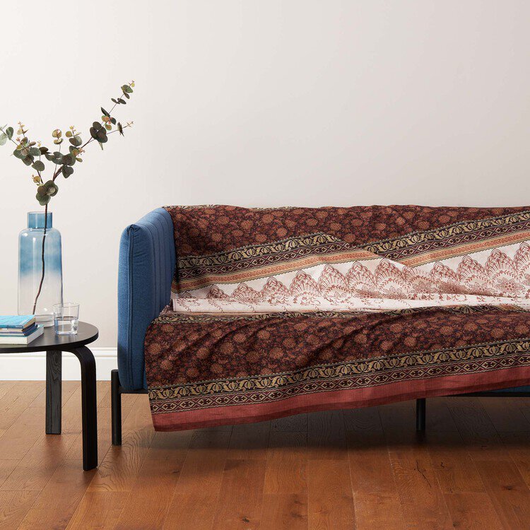 Telo d'arredo multiuso in puro cotone con stampa indanthrene per mantenere i colori inalterati nel tempo.
