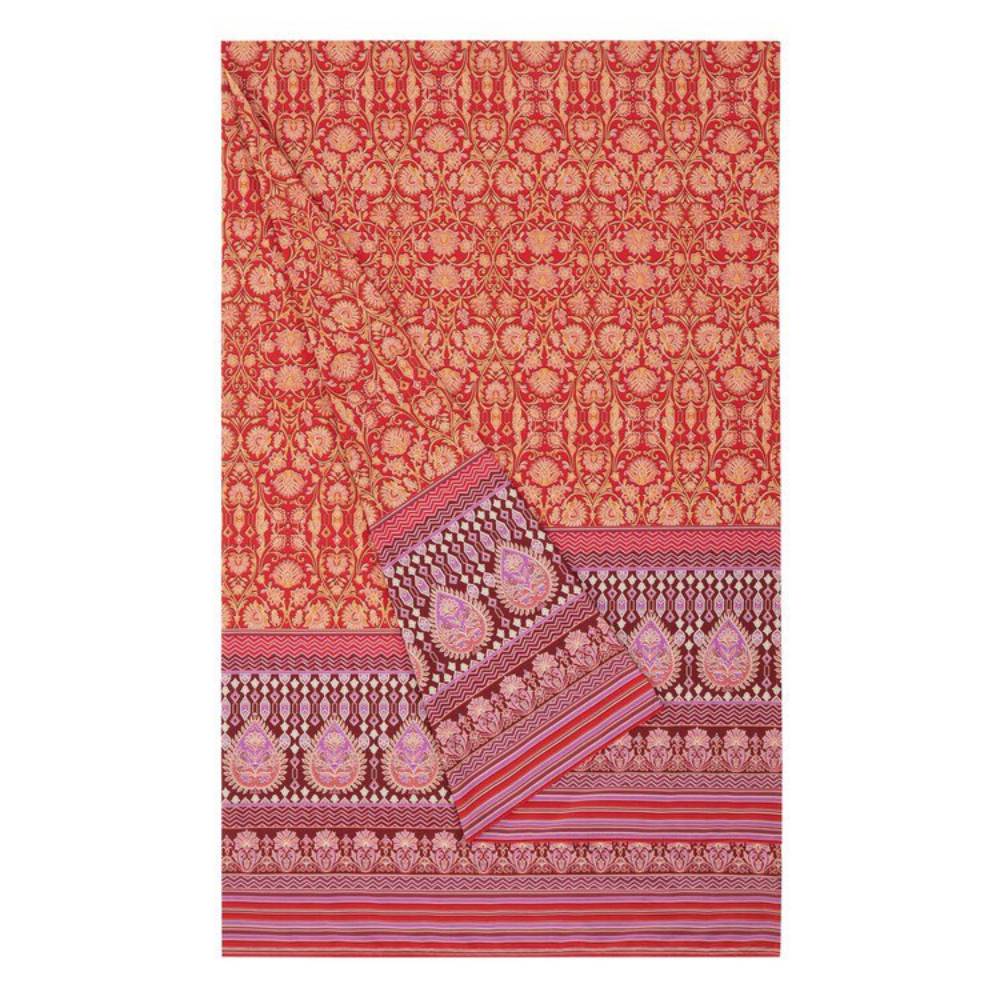I toni rossi espressivi combinati con elementi orientali rendono questo foulard un vero e proprio eye-catcher, aggiungendo un tocco di eleganza e originalità alla tua casa.
