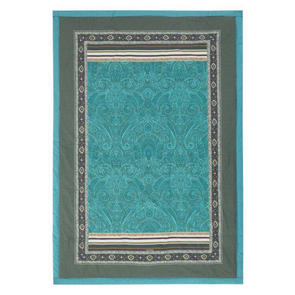 Plaid Maser V1 in 100% cotone di alta qualità della collezione primavera-estate di Bassetti - L'elegante e raffinato motivo Cashmere è interpretato attraverso i ricchi dettagli delle linee sinuose, esaltate da un degradé cromatico. Il bordo multicolore si alterna alla parte centrale della fantasia tono su tono, garantendo così un effetto omogeneo e armonioso.
