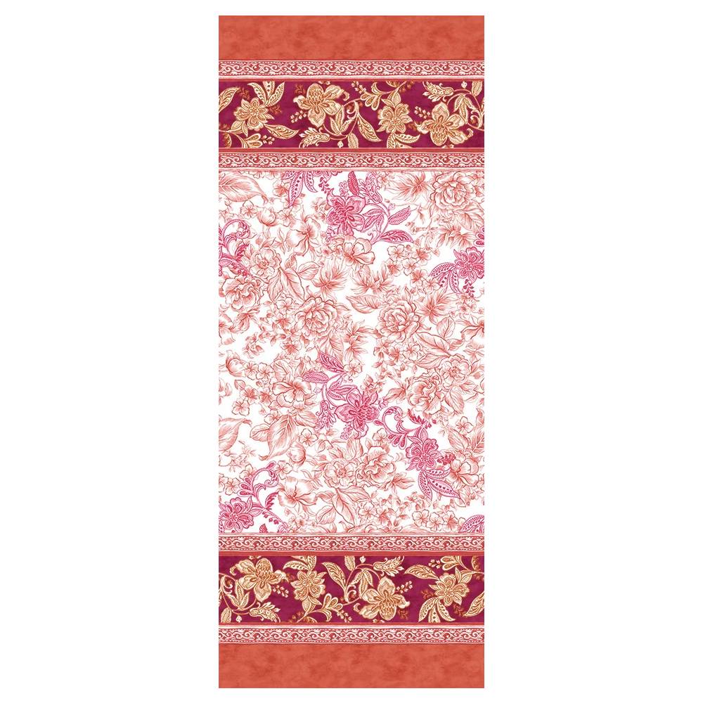 Tutta la qualità di Granfoulard Bassetti a tavola. Il runner CAPODIMONTE in fantasia floreale sui toni del rosso, è disponibile in panama di puro cotone, con trattamento esclusivo per una piacevole mano.