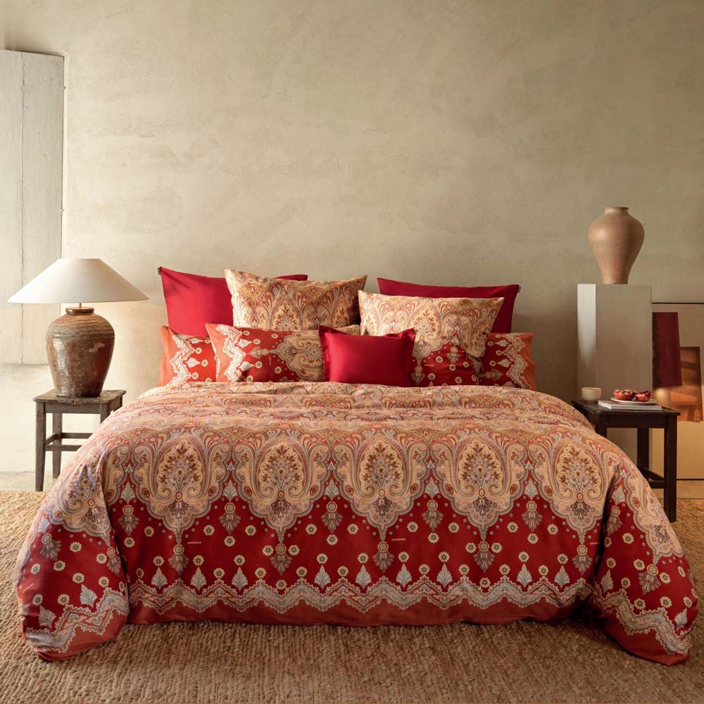 Le intense sfumature cromatiche dei copripiumini Bassetti offrono diverse varianti di colore, tra cui quella che richiama i tramonti estivi. Scegli la combinazione di colori che meglio si adatta al tuo stile e all'arredamento della tua camera da letto.