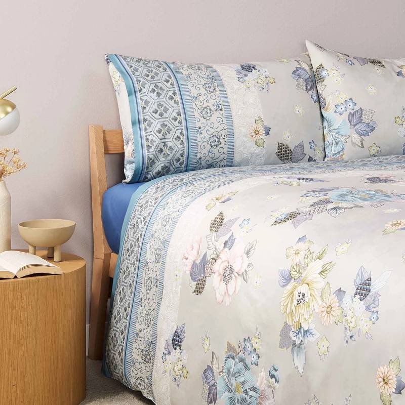 Completo copripiumone realizzato in finissimo raso di puro cotone della collezione Granfoulard Bassetti autunno/inverno ispirata alla luce intensa e inebriante dei giardini Giapponesi in fiore, che crea una rivisitazione moderna di un grande classico della collezione Granfoulard. Altissima qualità di stampa con coloranti solidi che mantengono la brillantezza dei colori inalterata nel tempo.