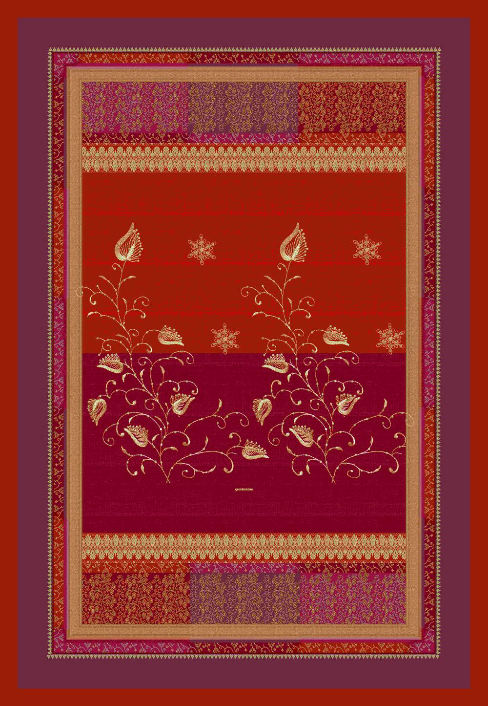 Il disegno si ispira ai motivi decorativi e ai riflessi cangianti tipici delle sete e dei tessuti indiani.