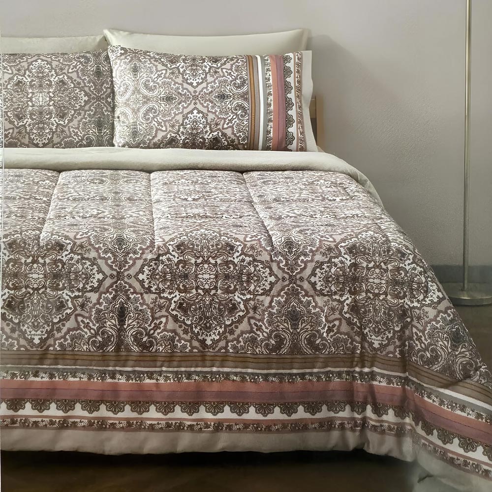 Un disegno caratterizzato da trama di intrecci cashmere di stampo orientale nei toni del sabbia.