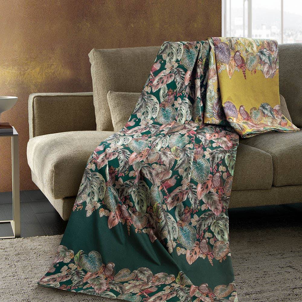 Raffinati intrecci di fauna e flora con Piuma, il nuovo telo arredo della Collezione Segreti di Gabel. Stampato con tecnica digitale su puro cotone pettinato, è un versatile complemento d arredo per un letto o un divano che si vuole rendere accogliente e raffinato. Da utilizzare anche come copriletto leggero nelle calde giornate estive o per attività all aperto in alternativa alla tradizionale tovaglia.