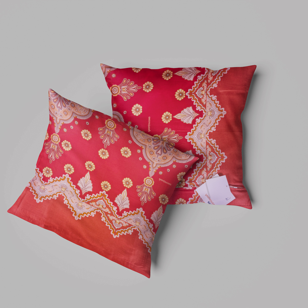 Questo copricuscino non è solo bello da vedere, ma anche estremamente confortevole grazie alla morbida texture del raso di cotone. La stampa Indanthrene di alta qualità garantisce che i colori rimangano brillanti anche dopo molti lavaggi. È l'accessorio ideale per aggiungere colore e stile a qualsiasi ambiente della casa, dal soggiorno alla camera da letto.