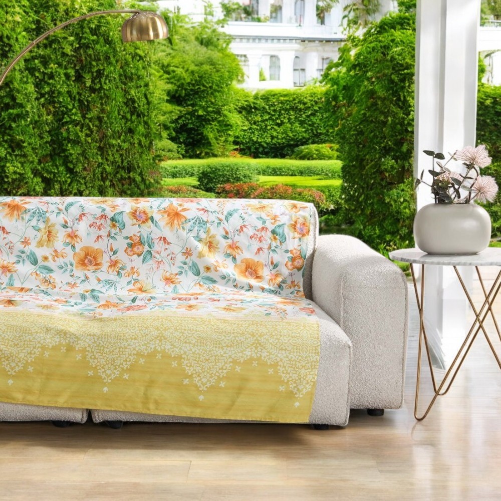 Granfoulard Bassetti Casablanca Y1 350x270 cm, perfetto per grandi divani, copriletti king size o tende scenografiche. Design floreale con ricami ispirati al Marocco in tonalità calde di giallo, oro e arancio.