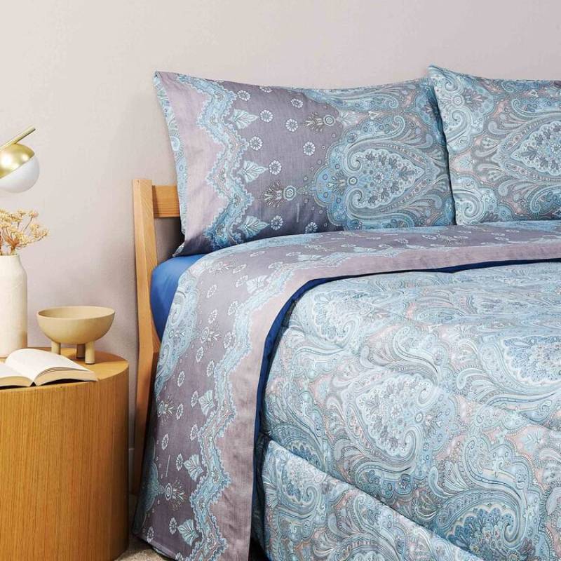 Il design ispirato alla natura e i colori tenui in azzurro con sfumature grigio creano un'atmosfera rilassante e accogliente. Perfette per chi ama i dettagli raffinati e vuole portare un tocco di stile e freschezza nella propria camera da letto. Queste lenzuola sono ideali per tutte le stagioni, grazie alla traspirabilità e al comfort del raso di cotone.