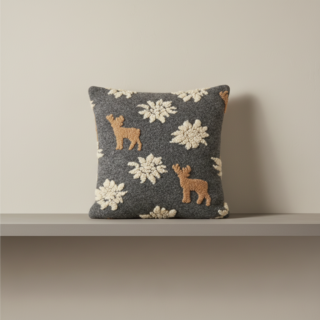 Questo cuscino in lana cotta 50x50 con cervi e stelle alpine su fondo antracite racchiude tutto il fascino dello stile tirolese e dell’arredo alpino più autentico. Un complemento d’arredo capace di trasformare l’atmosfera di una stanza, aggiungendo calore visivo, carattere e una sensazione immediata di accoglienza.