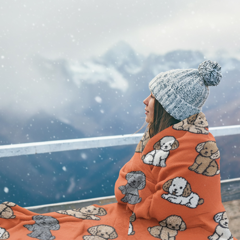 Il tocco di calore e tenerezza che stavi cercando per le tue serate sul divano! Questo plaid unisce la tradizione e il calore della lana cotta alla modernità e dolcezza del design con teneri cuccioli di cane.